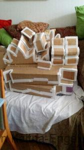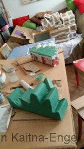 Diese Installation nimmt Bezug auf die Situation der Umwelt und die Realität der Verpackungen. Die Objekte sind aus wiederbenutzten Kartons gearbeitet und mit Lack bzw. Acrylfarben bearbeitet. Den Sockel bildet ein langgestreckter Kubus, ebenfalls aus gebrauchten Kartons arrangiert und mit Stoffen überdeckt. Auf den zwei großen Blatt-Objekten sind die ersten beiden Strophen des original italienischen Gedichts von Franziskus aus dem „Sonnengesang“ geschrieben. Die Blattobjekte sind aus Teilen gefertigt und mit Stricken verschnürt, Symbol für eine zerfallende und mühsam zusammengehaltene Um-Welt. Zwischen den beiden großen Blatt-Objekten liegt ein Schriftzug aus wiederverwendeten Milchpäckchen, die als Pflanzgefäße im Innenraum verwendet werden können. Sie sind mit Acrylfarbe grün gestrichen und einer aufgeklebten Blattzeichnung versehen. Ursprünglich sollte der Artwalk im April mit der Eröffnung des „Pflanztausch“ am Pfarrplatz zusammenfallen. (Diese Päckchen konnten auch einzeln mitgenommen werden.)